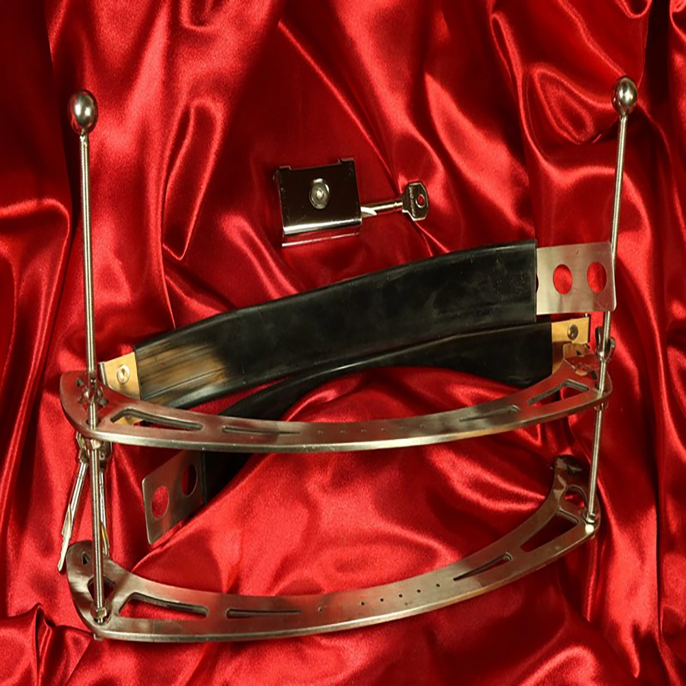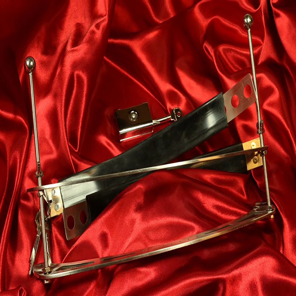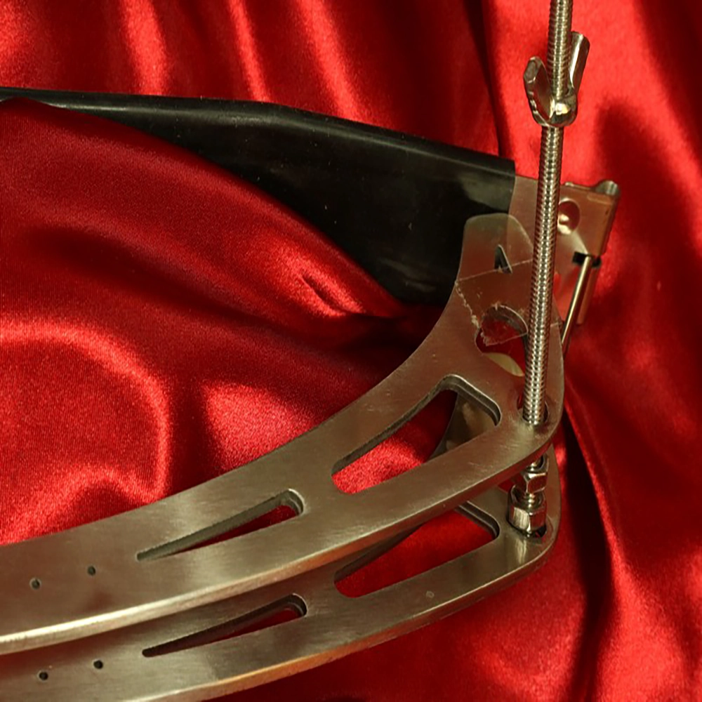 Chambers of Love presents the Adjustable breast clamp – Tower of Pain, created for those who want to take their breast pain sessions to a whole new level. This exclusive breast clamp is made from high-quality stainless steel with a focus on safety, control and brutal pleasure. The powerful, adjustable construction encloses the entire breast and allows you to gradually increase the pressure – from uncomfortable tension to truly intense pain. Adjustable breast clamp – Tower of Pain is designed for stable and consistent pressure across the whole breast. With its smart screw and bar construction, you can precisely fine-tune the pressure during your BDSM sessions and lock the position once you have found the right level. On the back, a clear locking mechanism ensures that the clamp cannot be removed without permission – perfect for intense dominance and submission sessions where control must remain with the Dominant.